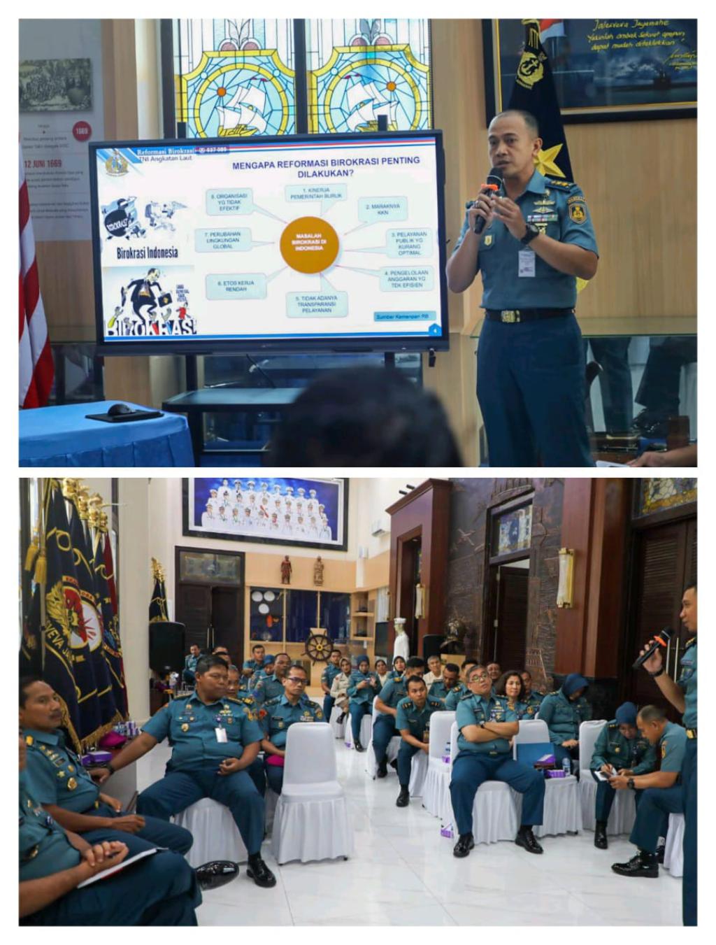 Sebagai upaya untuk meningkatkan implementasi Reformasi Birokrasi (RB) dan Pembangunan Zona Integritas (ZI) di lingkungan TNI AL. Paban VI RB Srenaal beserta staf melaksanakan Sosialisasi RB dan ZI kepada Satker Disjarahal yang dihadiri oleh Kadisjarahal beserta staff.